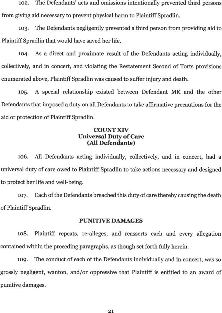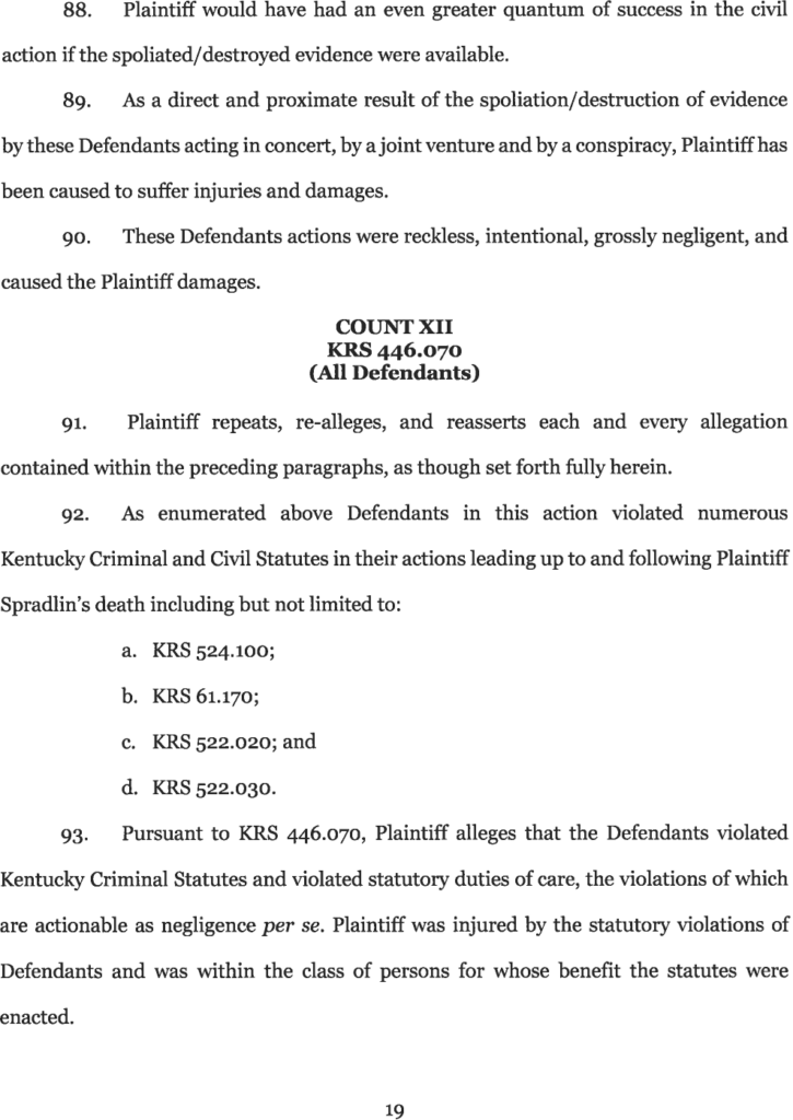 PRESTONSBURG, Ky. — The estate of Amber Spradlin has filed a civil complaint against multiple defendants, alleging negligence, wrongful death, evidence tampering, obstruction of justice and other claims.