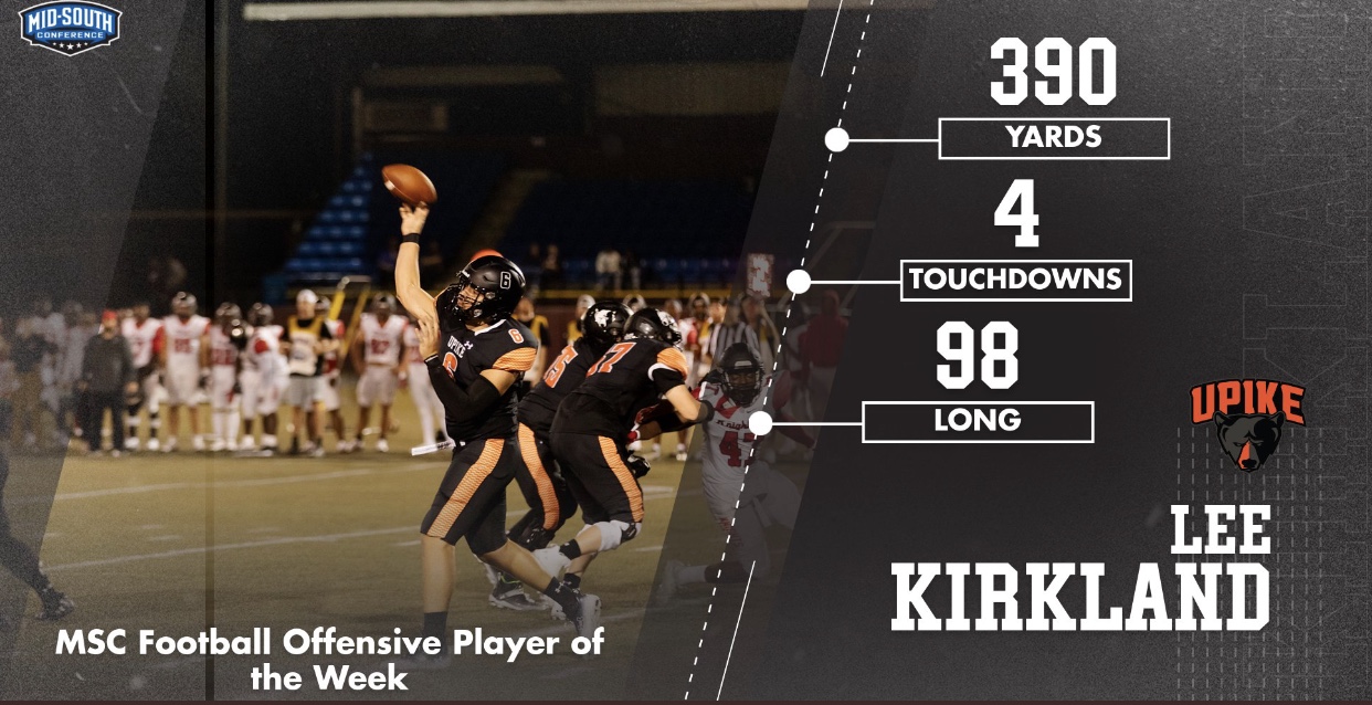 The Mid-South Conference has announced that University of Pikeville quarterback Lee Kirkland was named Offensive Player of the Week.