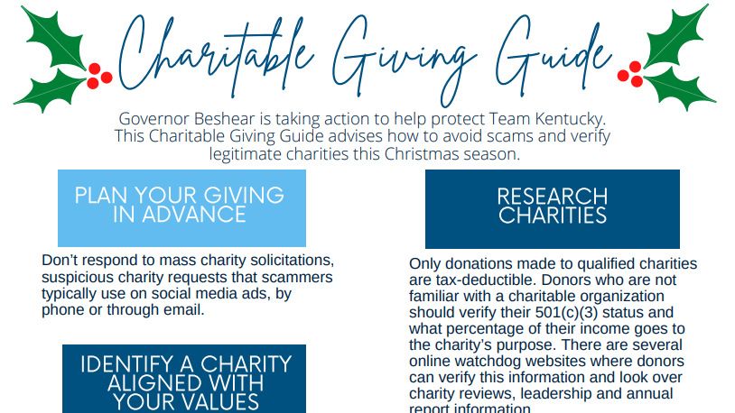 This week is International Charity Fraud Awareness Week, and Governor Andy Beshear’s office is marking the occasion by releasing a Charitable Giving Guide.