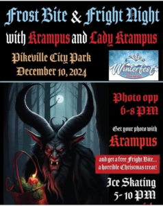 The city had planned one evening with a visit from Krampus and “Lady Krampus,” who would pose for pictures with visitors to Winter Fest. Those attending would then get a free “Fright Bite,” which was described as a “horrible Christmas treat.” The evening would be capped off with heavy metal Christmas songs at the ice skating rink.