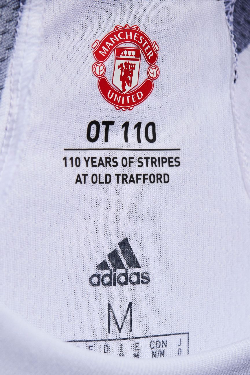 To create the monochrome design, Adidas says it took elements from various United kits of the past and deconstructed them, hacking them apart and re-stitching them to create a latter-day Frankenstein’s monster of a shirt.