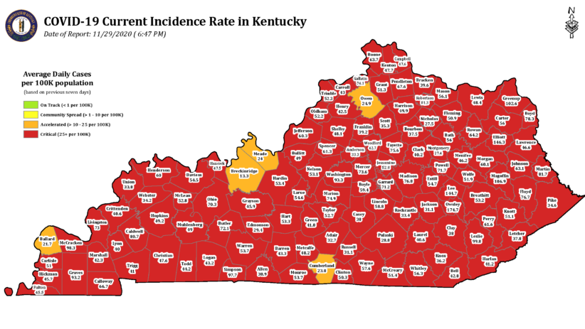FRANKFORT, Ky. — The coronavirus didn’t take a holiday, after the state posted its highest numbers yet on Thanksgiving Day.
