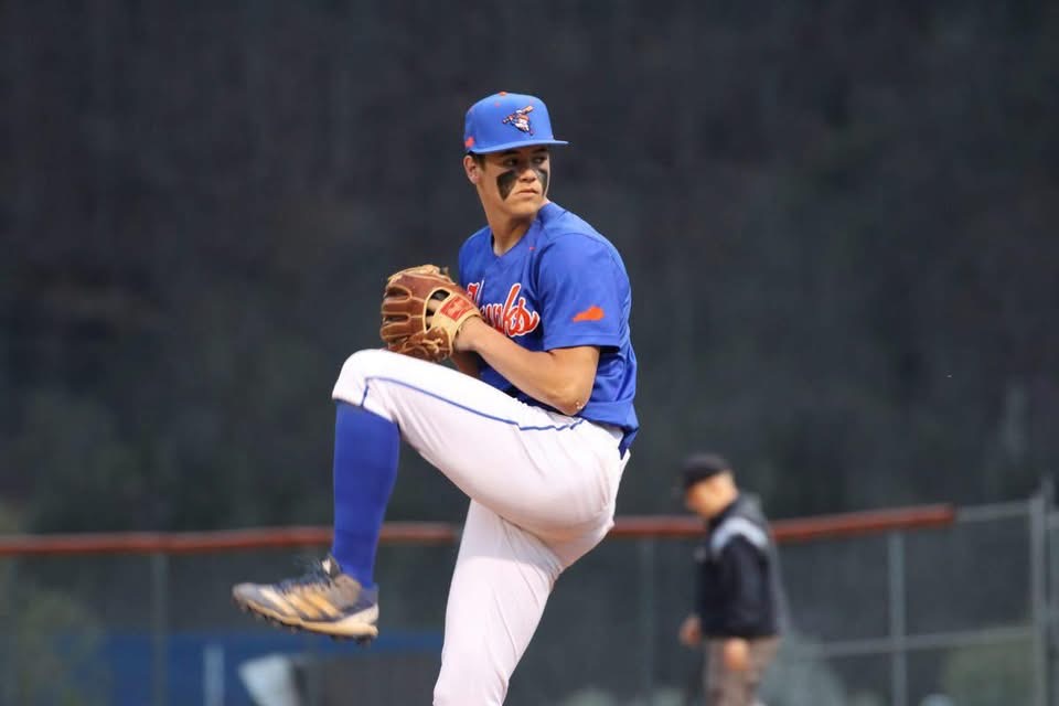 Jonah Hicks pitched a complete game Thursday night to give the Hawks a 3-1 victory over the Magoffin County Hornets. Hicks was in a groove on the mound, throwing 102 pitches in seven innings with 73 called strikes. He allowed only one run on six hits with 11 strikeouts and did not allow a walk.