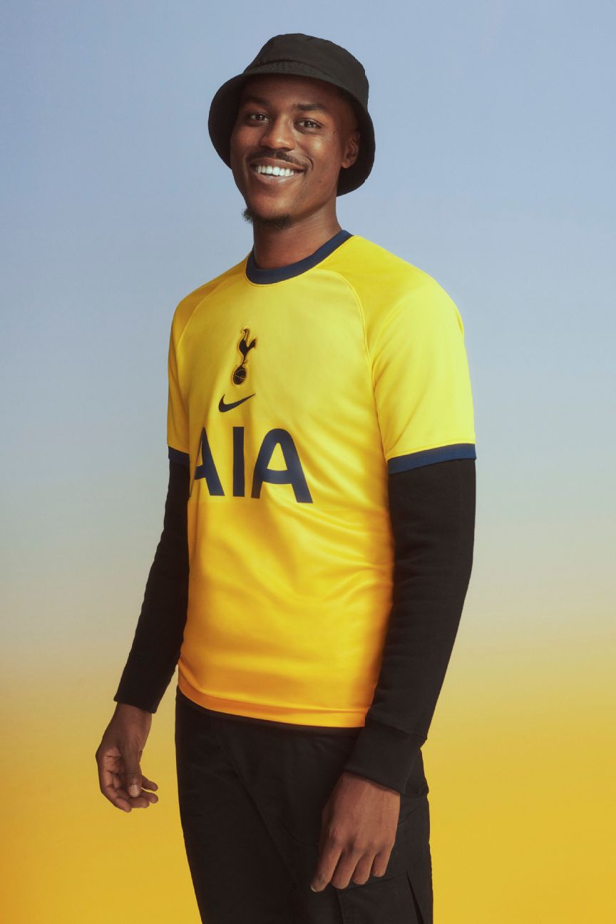 Inspired by both Spurs away shirts of yore and Nike’s classic Air Max 95 sneaker. It’s a plain yellow football kit. It looks more like a nice T-shirt that would go well with said footwear, rather than a sports kit.