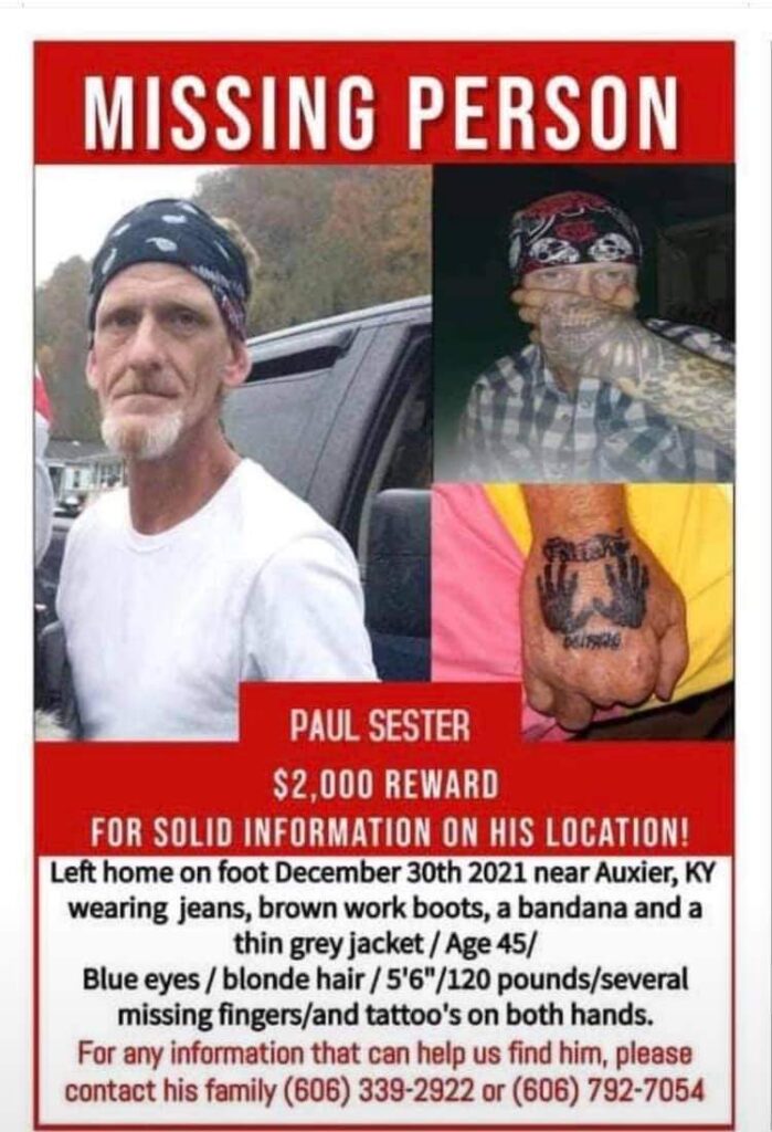 Paul Setser, 46, of Auxier, was last seen Dec. 30 at some apartments near Old Abbott Mountain Road.