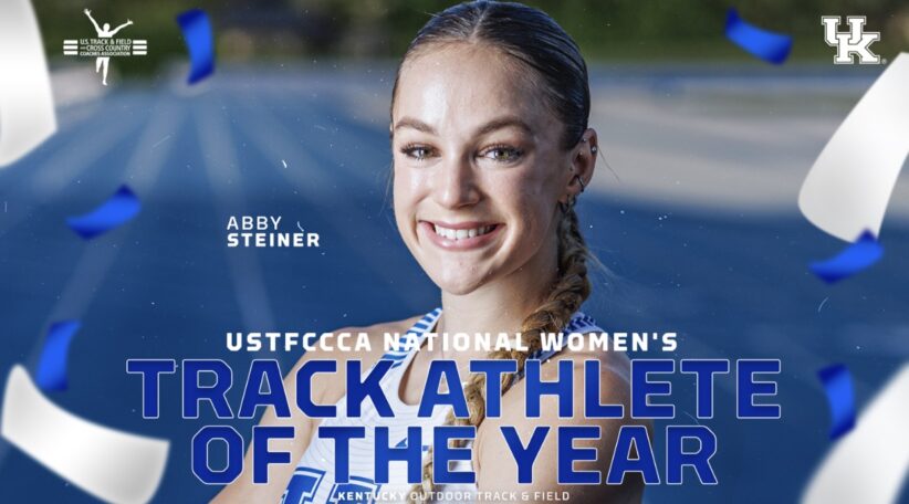 Kentucky track & field senior sprinter Abby Steiner has been named the United State Track and Field and Cross Country Coaches Association National Women’s Track Athlete of the Year for the second season in a row, also winning the award for this year’s indoor season.