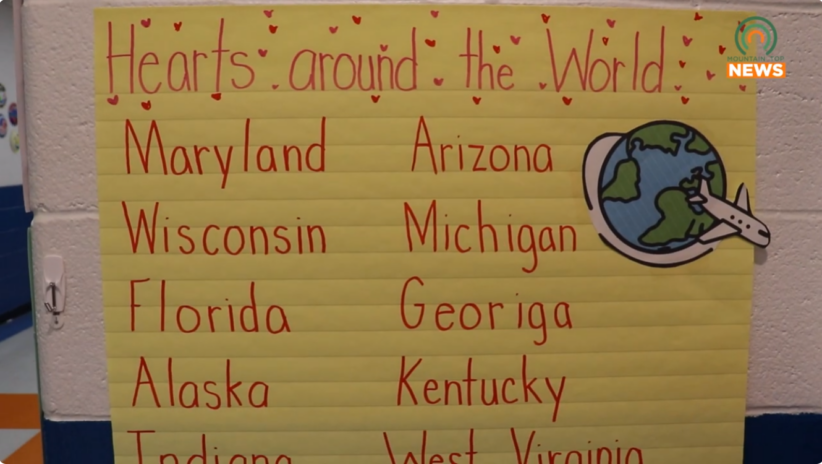 A Mullins Elementary School kindergarten teacher is using valentines to teach her students writing and geography.